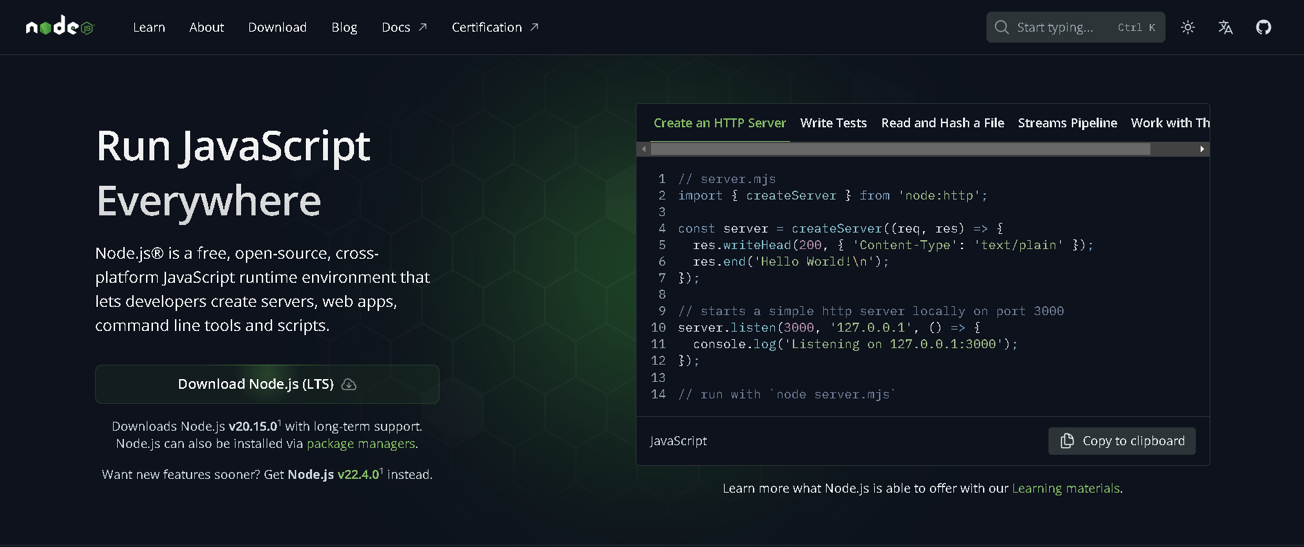 Node.js® is a JavaScript runtime built on Chrome's V8 JavaScript engine.